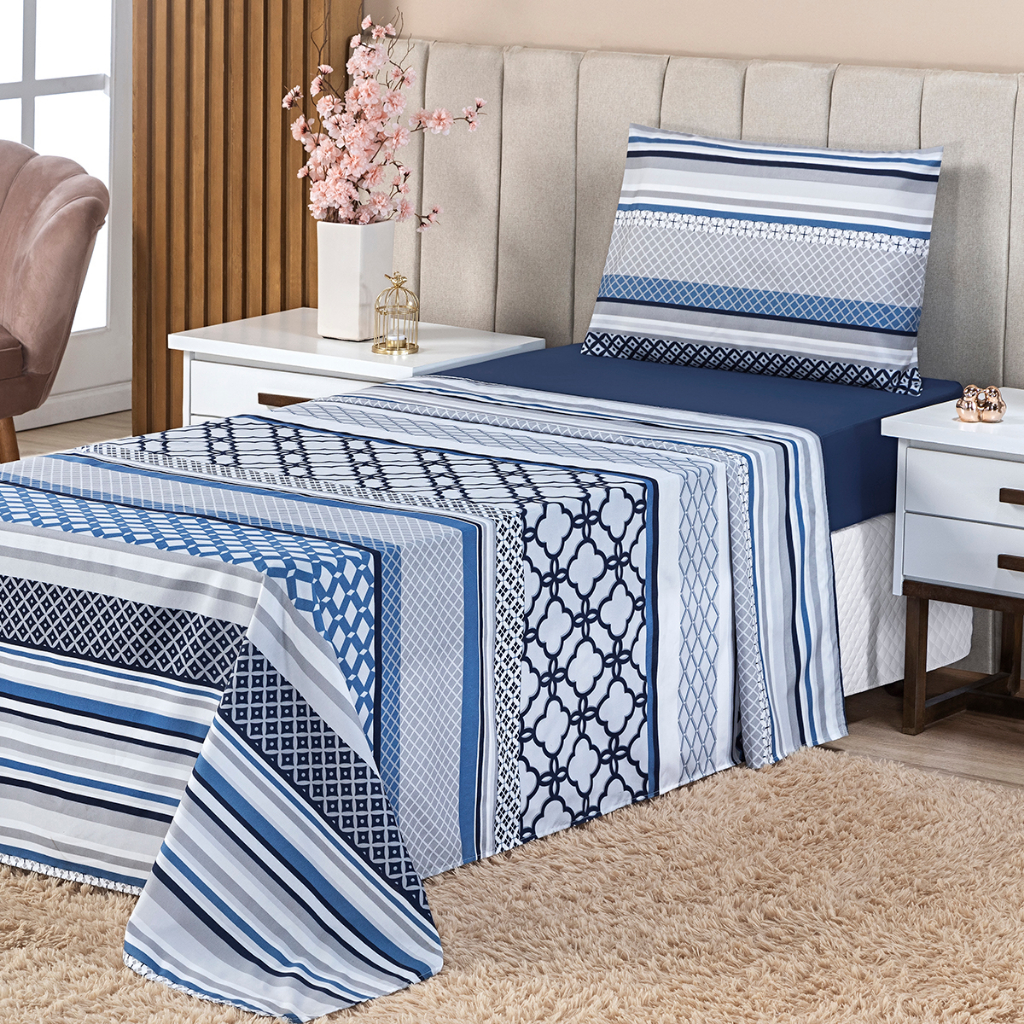 Jogo de Cama Lençol Solteiro 3 peças 100% Algodão Estampado Elástico