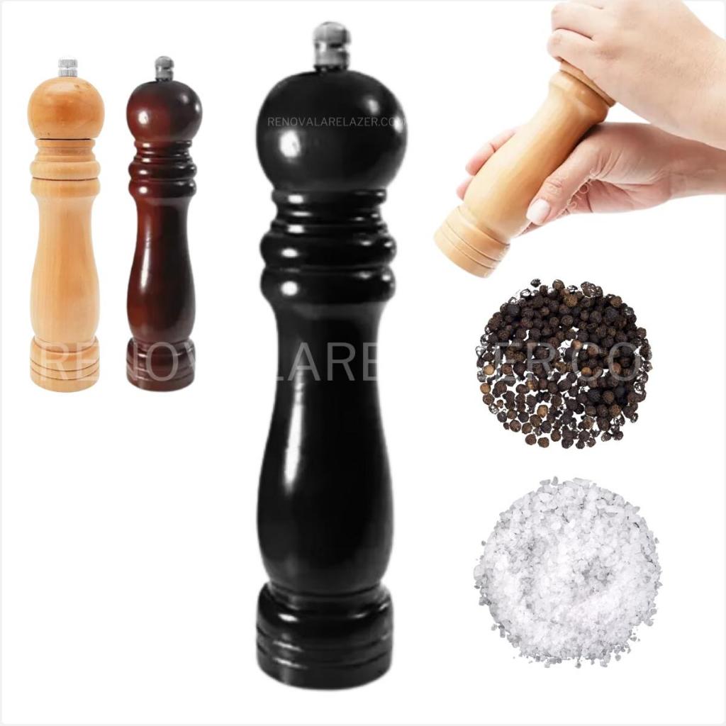 Kit 2 Peças Moedor de Pimenta Sal Grosso Temperos Especiarias Madeira Gourmet Grande e Médio