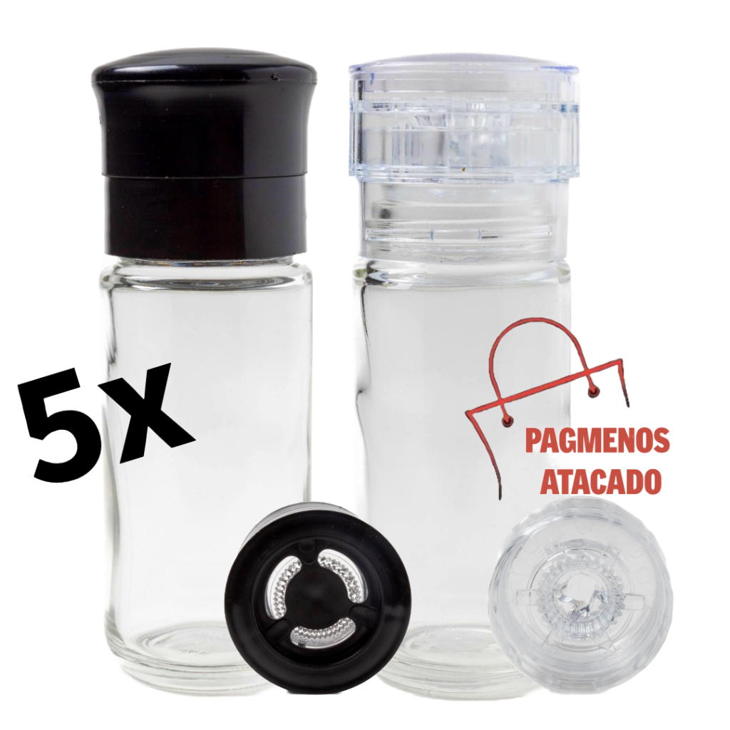 5 Moedores de Pimenta do Reino Pote de Tempero de Vidro Moedor de Sal Grosso e Especiarias Pote de Vidro 100ml Cozinha