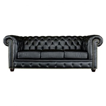 Sofá 3 Lugares Sala de Estar 235cm Chesterfield Pés Madeira Couro Preto G40 - Gran Belo
