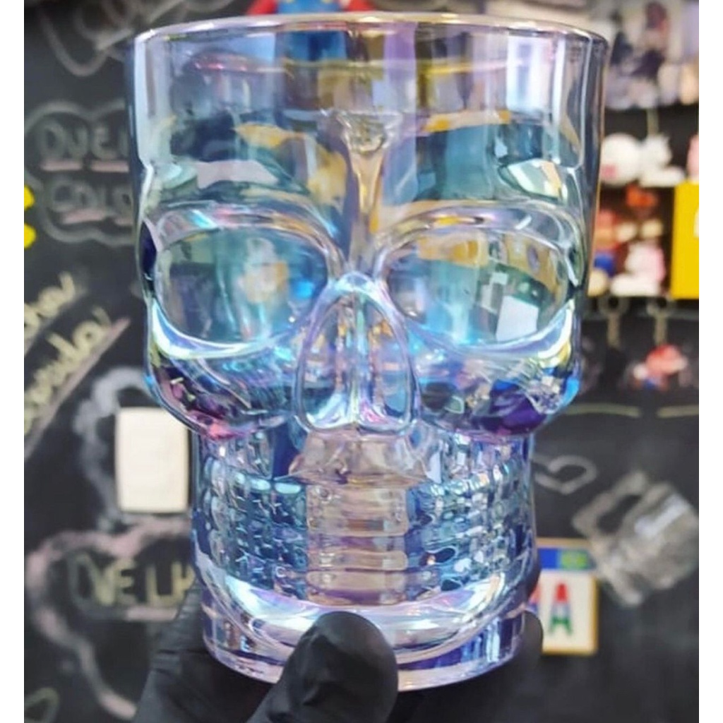 Caneca para Chopp Vidro Caveira Rock Style Ambar, FurtaCor, Tranparente, Espelhada 520ml Dolce Home