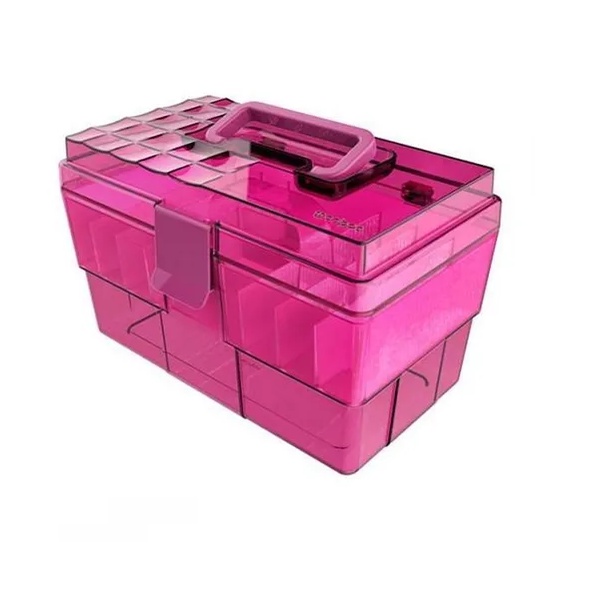 Maleta Caixa Organizadora, Cor Rosa Transparente e Acessórios Rosa Multiuso Crippa