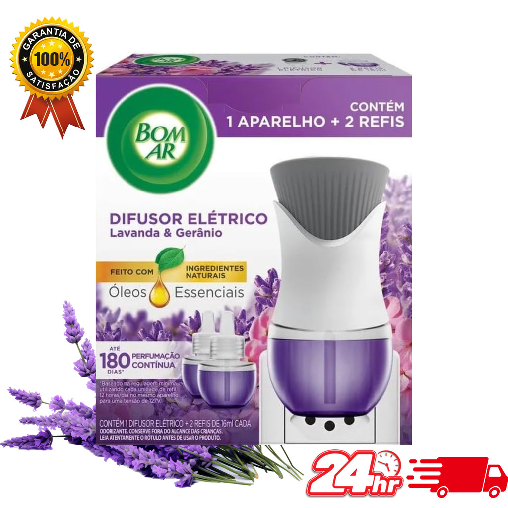 Bom Ar Difusor de Aromas Elétrico Lavanda e Gerânio COMPLETO