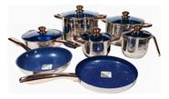 Jogo De Panelas Alemã - 13 Pçs - Anti-aderente Fogão Indu Cor Azul - Dusseldorf