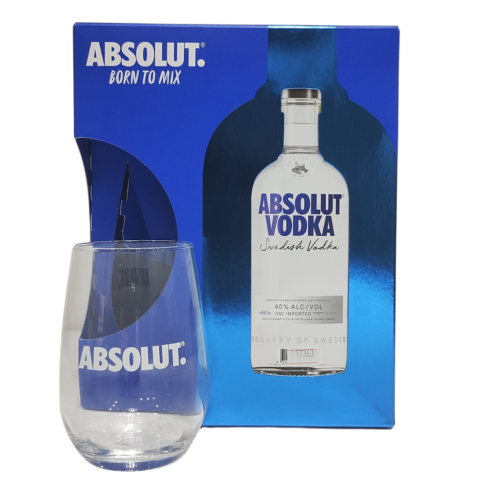 Kit Vodka Absolut 750ml + Copo Vidro 480ml