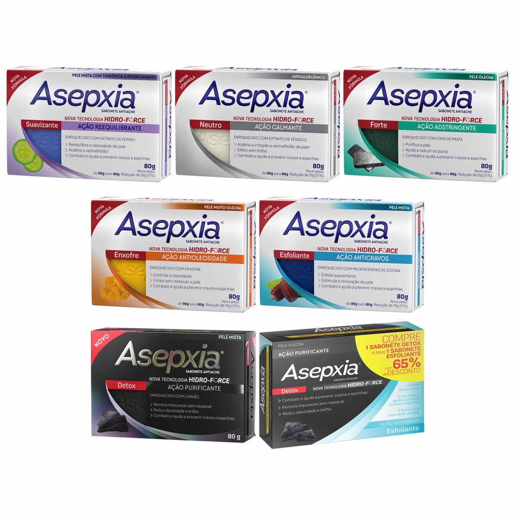Asepxia Sabonete Facial Antiacne Esfoliante Suavizante Enxofre Detox Forte Neutro