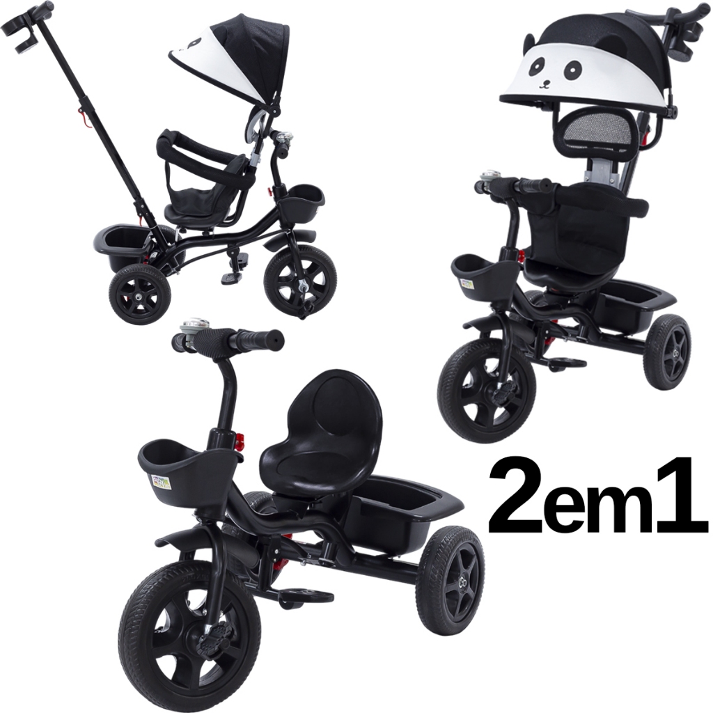 Triciclo Infantil com Empurrador Carrinho de Passeio Crianca com Capota 50kg Guia Cesto Rodas 2 em 1