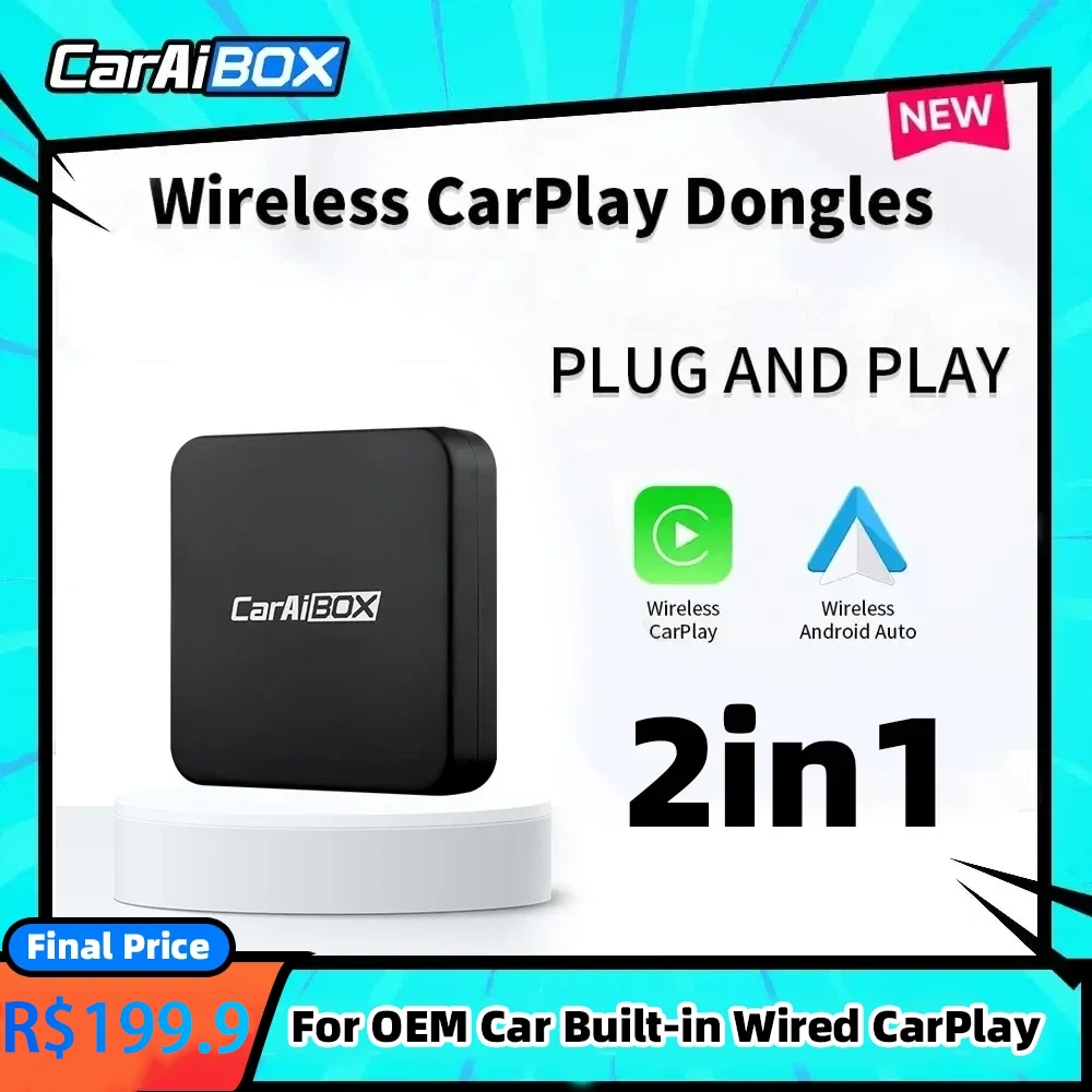 CarAIBOX Conversor De Carro Sem Fio Carplay Adaptador Para Android E iPhone