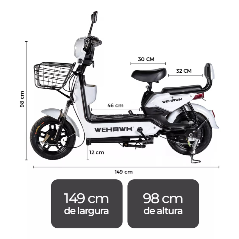 Scooter Bicicleta Elétrica Wehawk Basket 500w 40 Km Autonomia BRANCA 48v