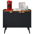 Aparador Buffet Wood Prime 3 Portas Cantinho Café Prateleira Organizadora Pés Palito Decoração Retrô - Preto|Ripado Nature - RPM Móveis