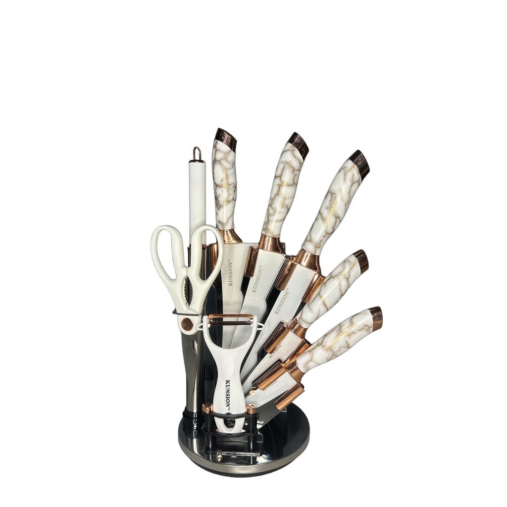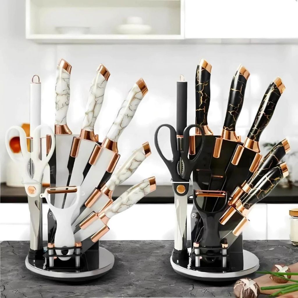 Jogo De Facas 9 Peças Faqueiro Com Suporte Base Giratória em Aço Inox Profissional Conjunto de Facas Cozinha
