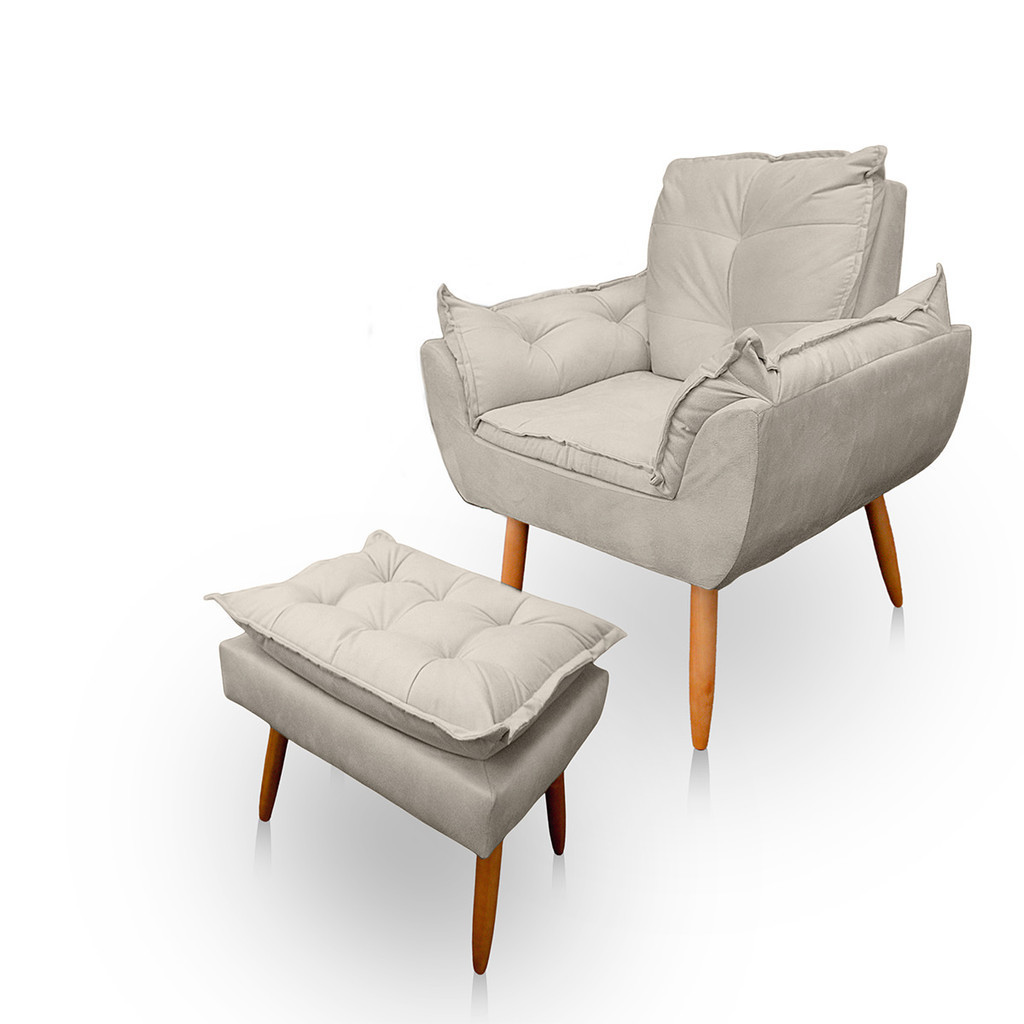 Poltrona Opala com Puff Opala para Sala e Quarto Suede Bege - LH Decor