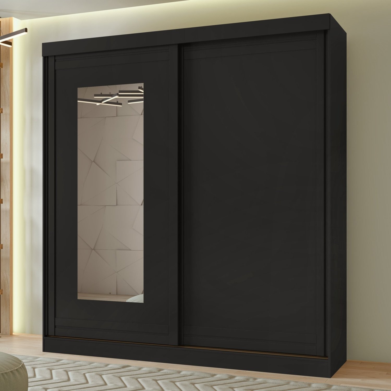 Guarda Roupa Flex 2 Portas de Correr com Espelho 2 Gavetas 208x179,6cm Lani Móveis Lopas
