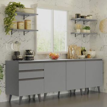 Armário de Cozinha Compacta 240cm Cinza Nice Madesa 01
