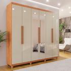 Guarda Roupa Casal com Espelho Interno Pés 6 Portas 100 MDF Aurora Panan - Palha