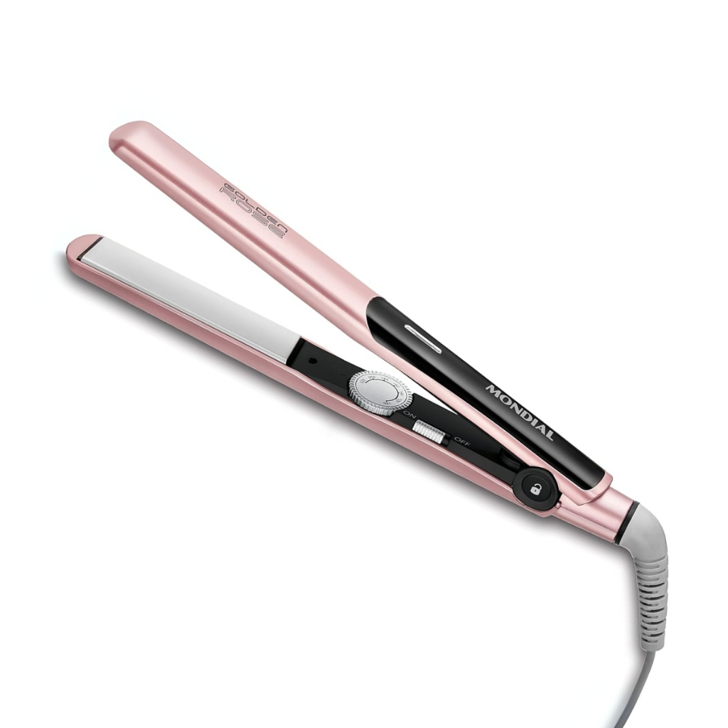 Chapinha | Prancha Mondial Golden Rose P20 Cerâmica 220°C com Emissão de Íons e Cabo Giratório Rosa - Bivolt