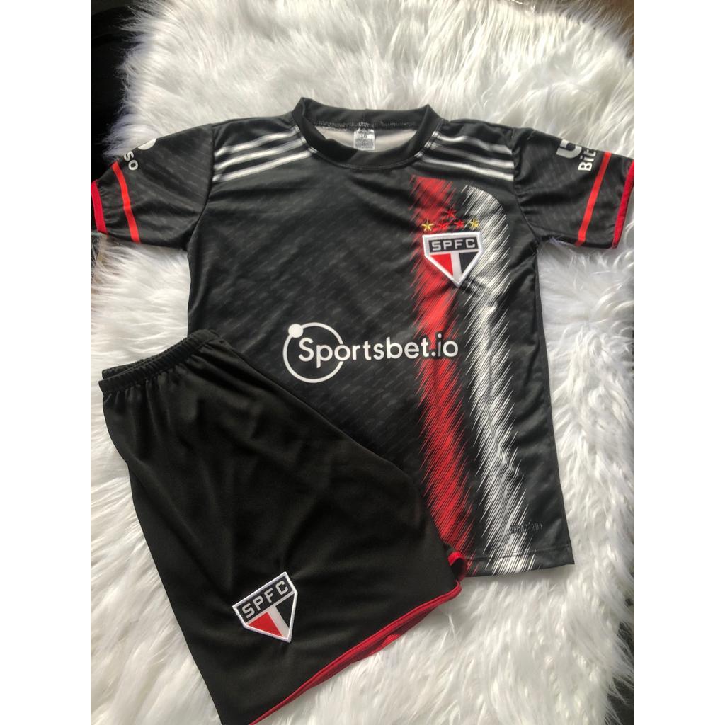 Novo Kit de Futebol do São Paulo Preto Camisa+Bermuda Infantil na Promoção!!