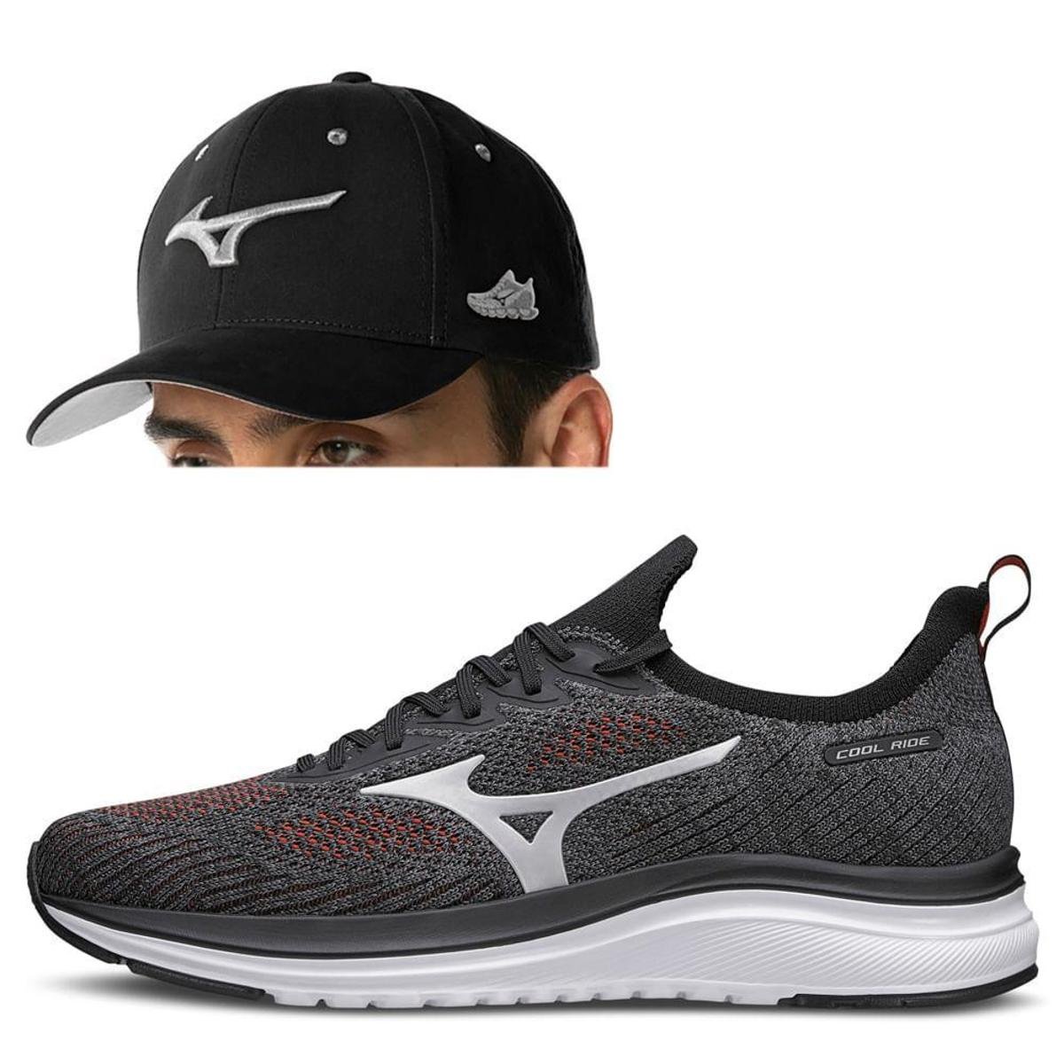 Kit Tênis Mizuno Cool Ride + Boné Aba Curva Prime + 1 Meia Cano Médio - Masculino