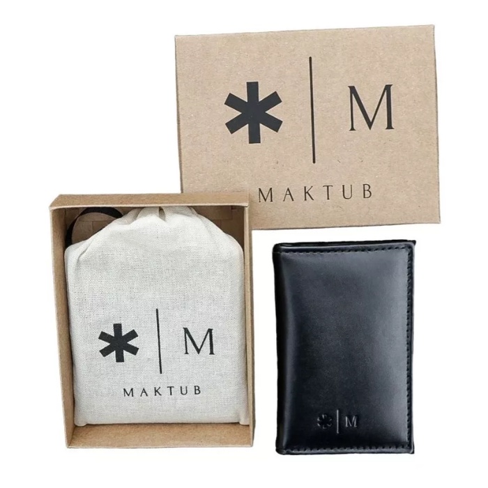 Carteira masculina Maktub Slim elegante com caixa de presente Preta Em Couro Porta Cartão CNH