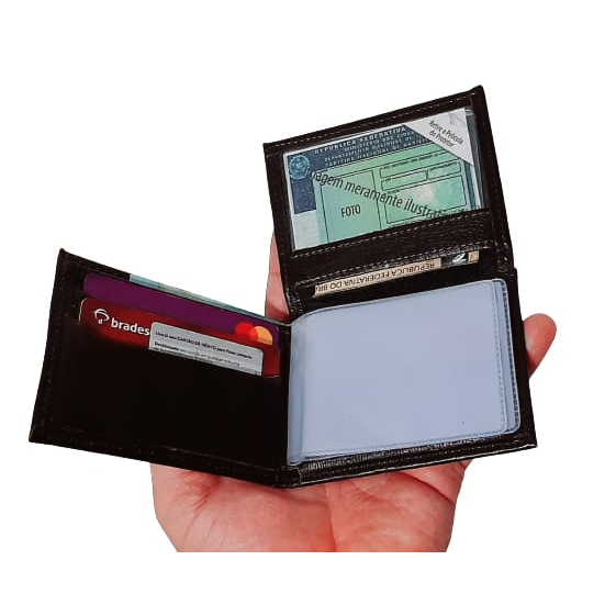 Carteira masculina de Couro Modelo L, Com Porta Moedas Em Ziper, Com plastico para RG,CPF removivel, Envio Imediato