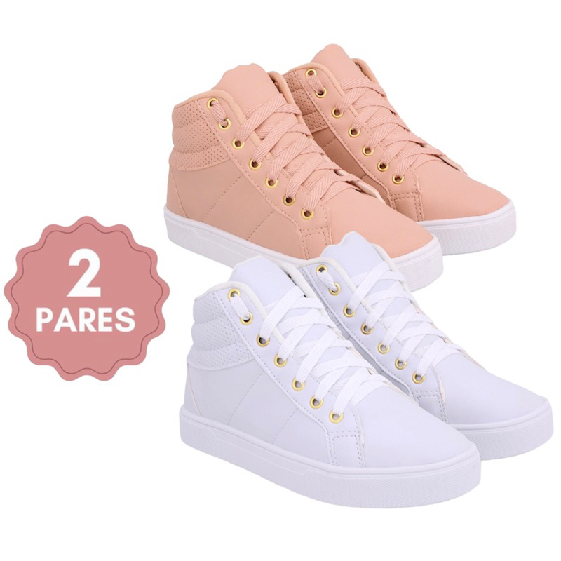 Kit 2 Pares Botinha Casual Feminina Bota Tenis Cano Alto Medio Academia