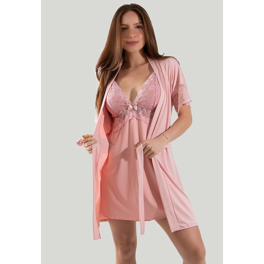 Robe De Renda Pijama Feminino Lingerie Langerie Hobby Sexy Para Lua de Mel e Noivas Kimono Roupão Gestante e Pós Parto Dr 301