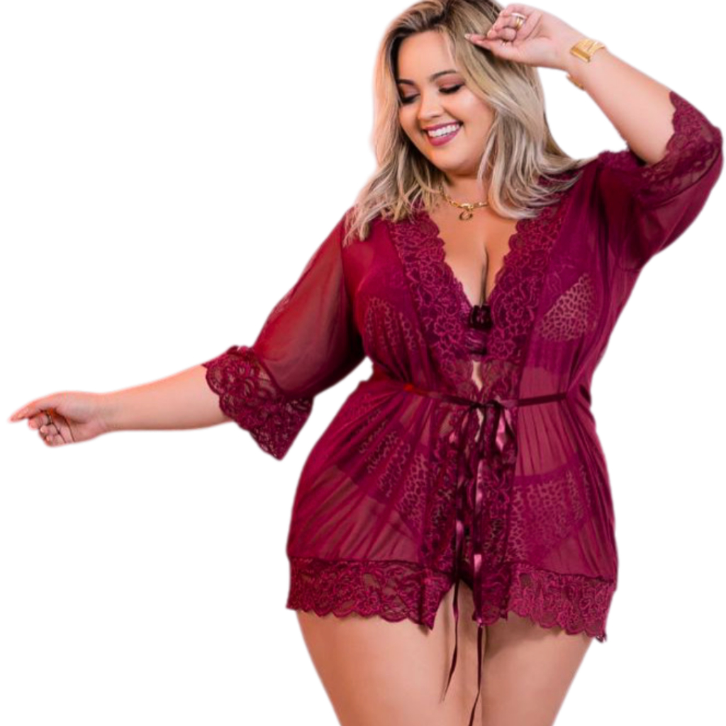 Robe plus size Lingerie Sexy Roupão renda e tule kimono Feminino ROBY Curves