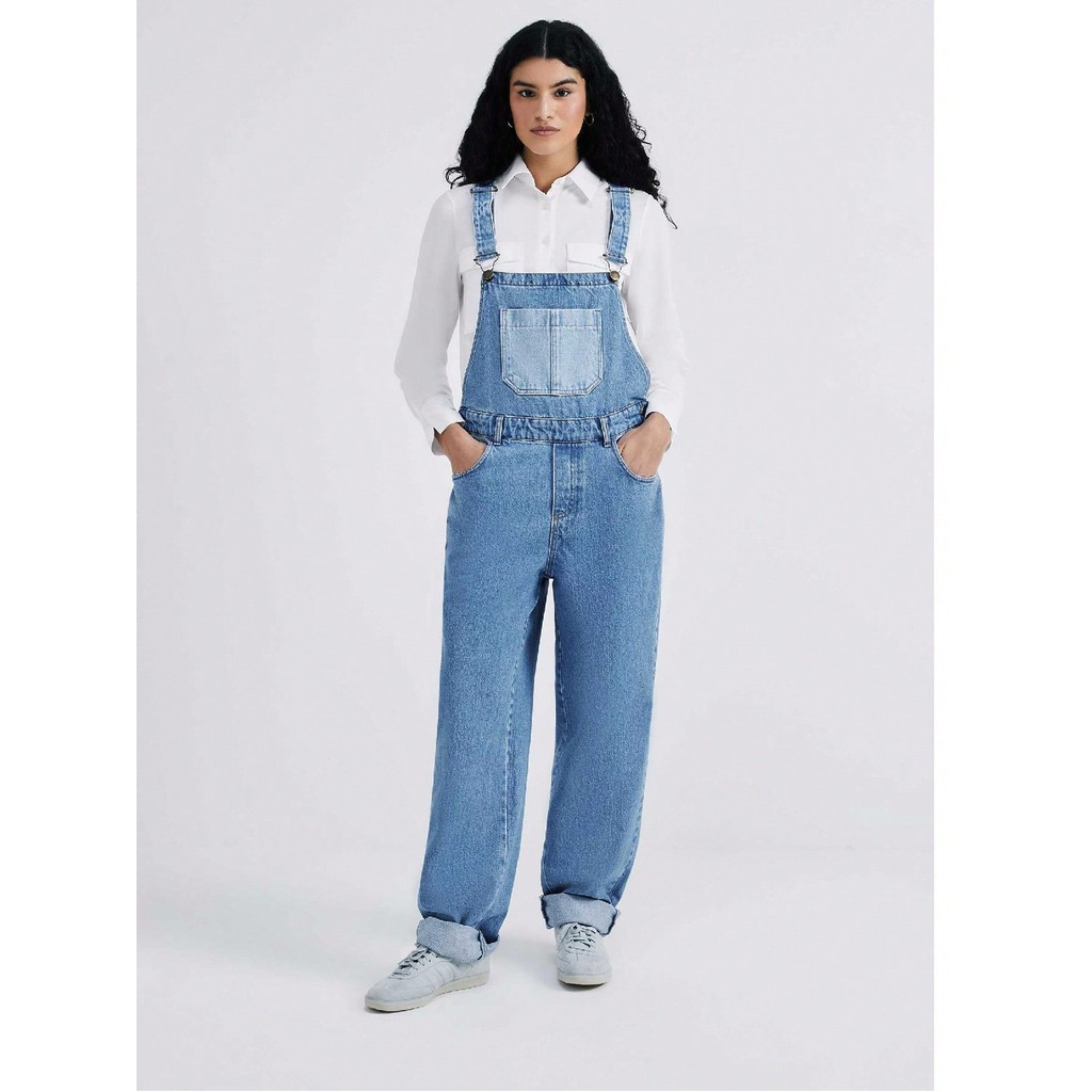 Jardineira Jeans Cotton On Reta Pespontos Azul
