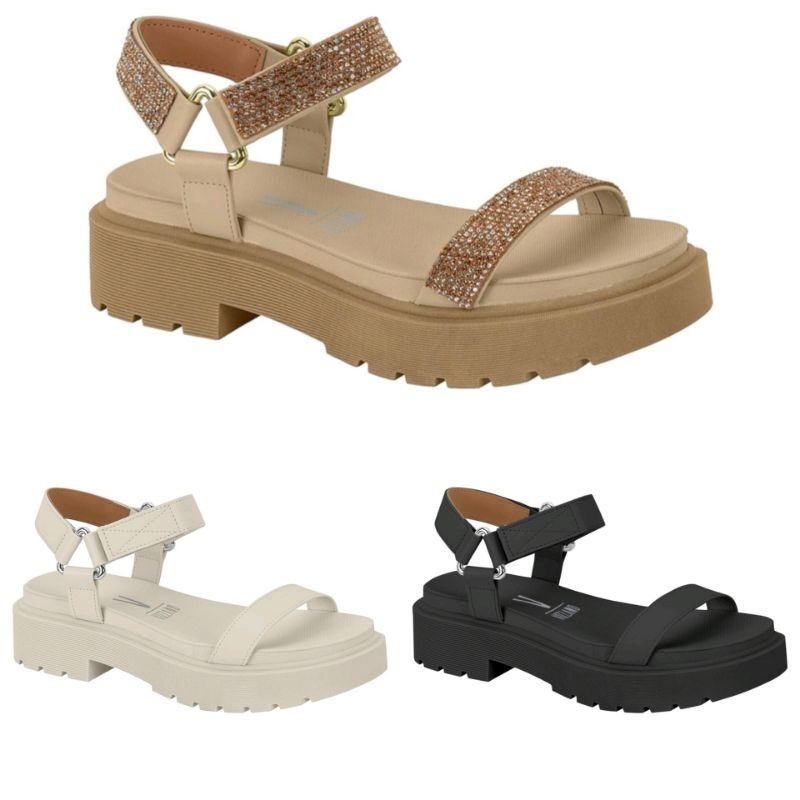 Papete Feminina Vizzano Tiras Brilho Strass Flatform Tratorado Preta Sandália Confortável Original