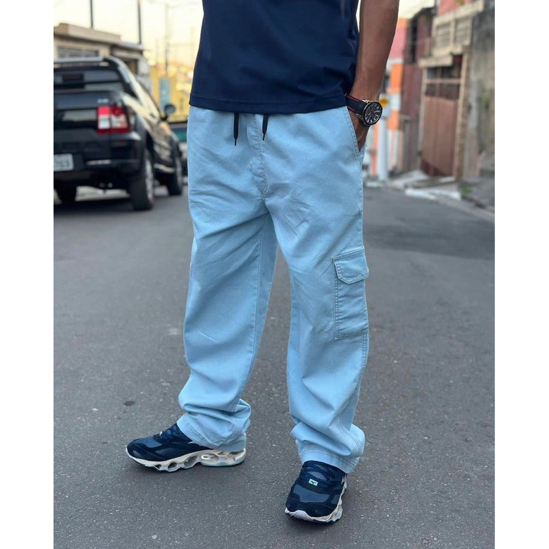 Calça Jeans Masculina Balão Cargo Skatista Dazzling Azul Claro
