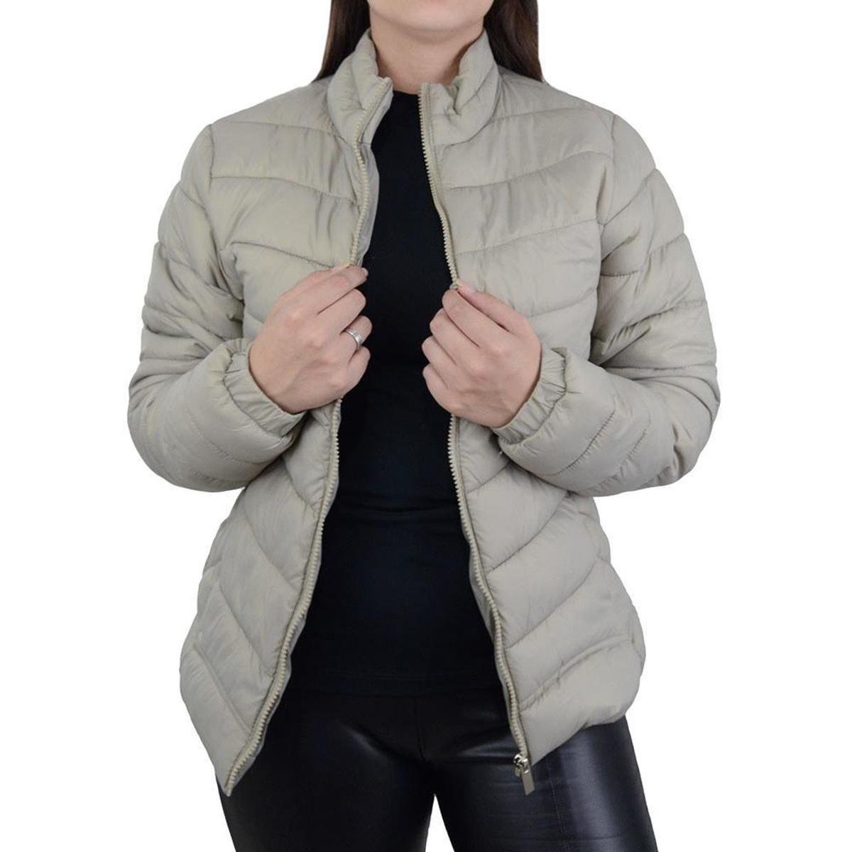 Jaqueta Feminina Facinelli By Mooncity Peluciada Bege Kaqui - 620294