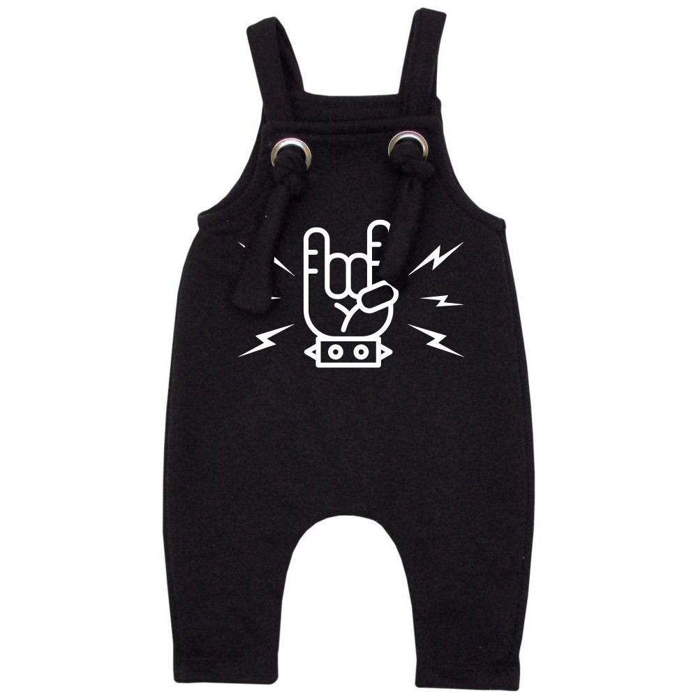 Jardineira Bebê Saruel Macacão Moletom Preta Rock