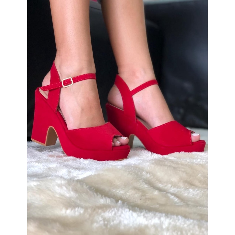 Sandália Modarpe Meia Pata Salto Grosso Vermelho M21