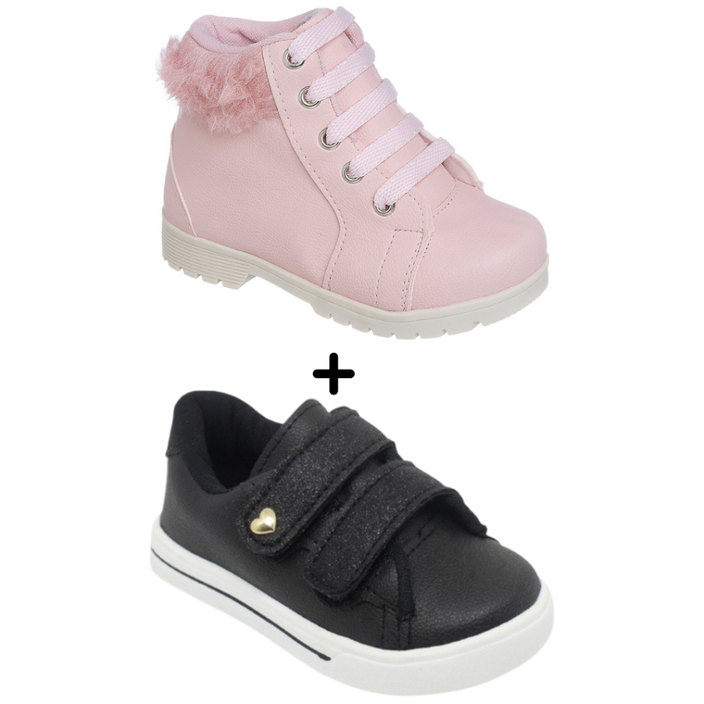 kit 2 tênis Infantil Feminino versátil barato perfeito para passeios e escola botinha