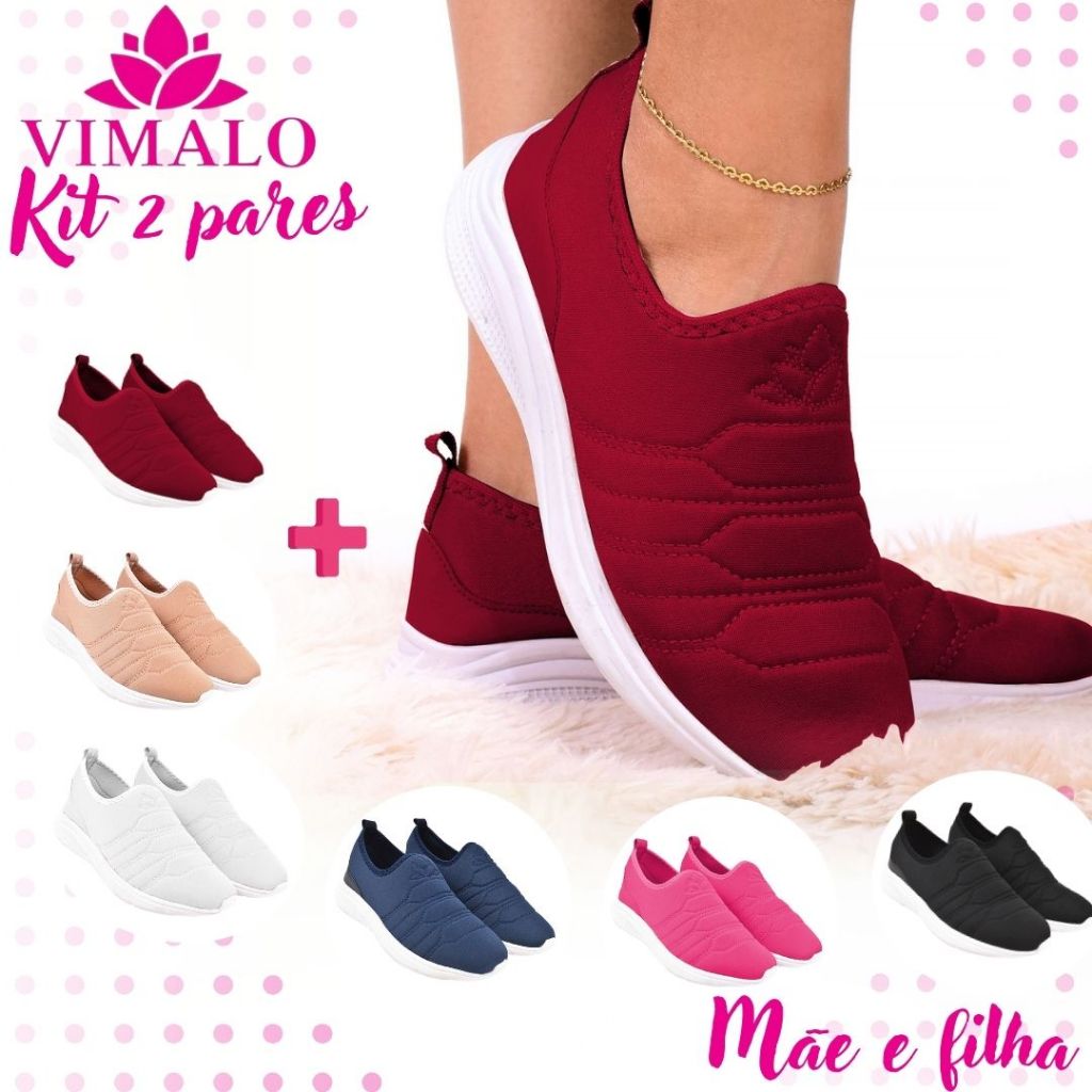 Kit 2 pares Promocional Tênis Jogging Feminino para Academia Passeio ou Caminhada Vimalo VL01 MARSALA + ADICIONAL