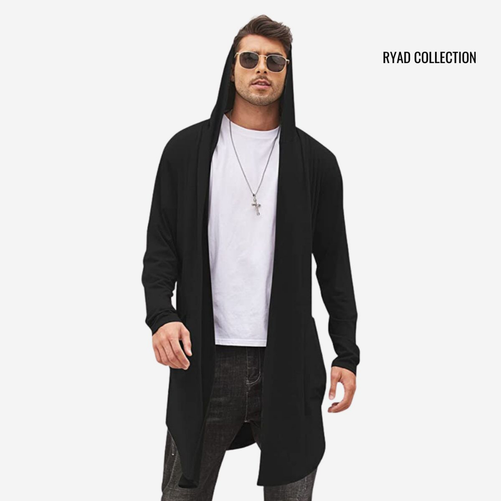 Cardigan Masculino Sobretudo Blazer Estiloso Comprido Casaco Longo com Capuz