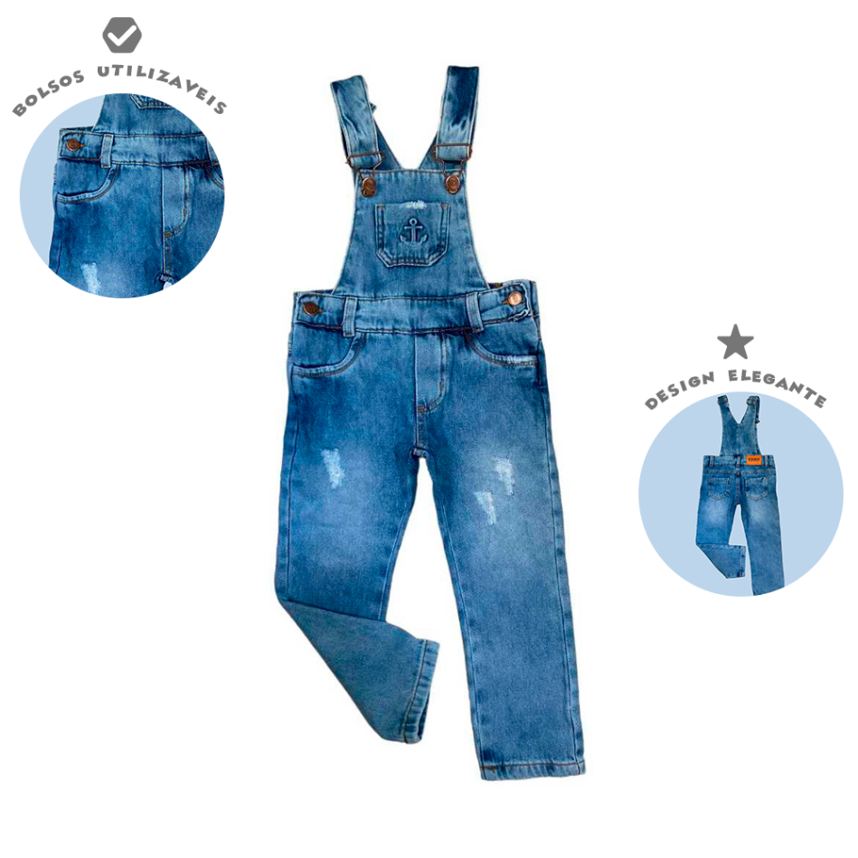 Macacão Jardineira Jeans e Brim Masculina Infantil Menino 1 a 8 anos.