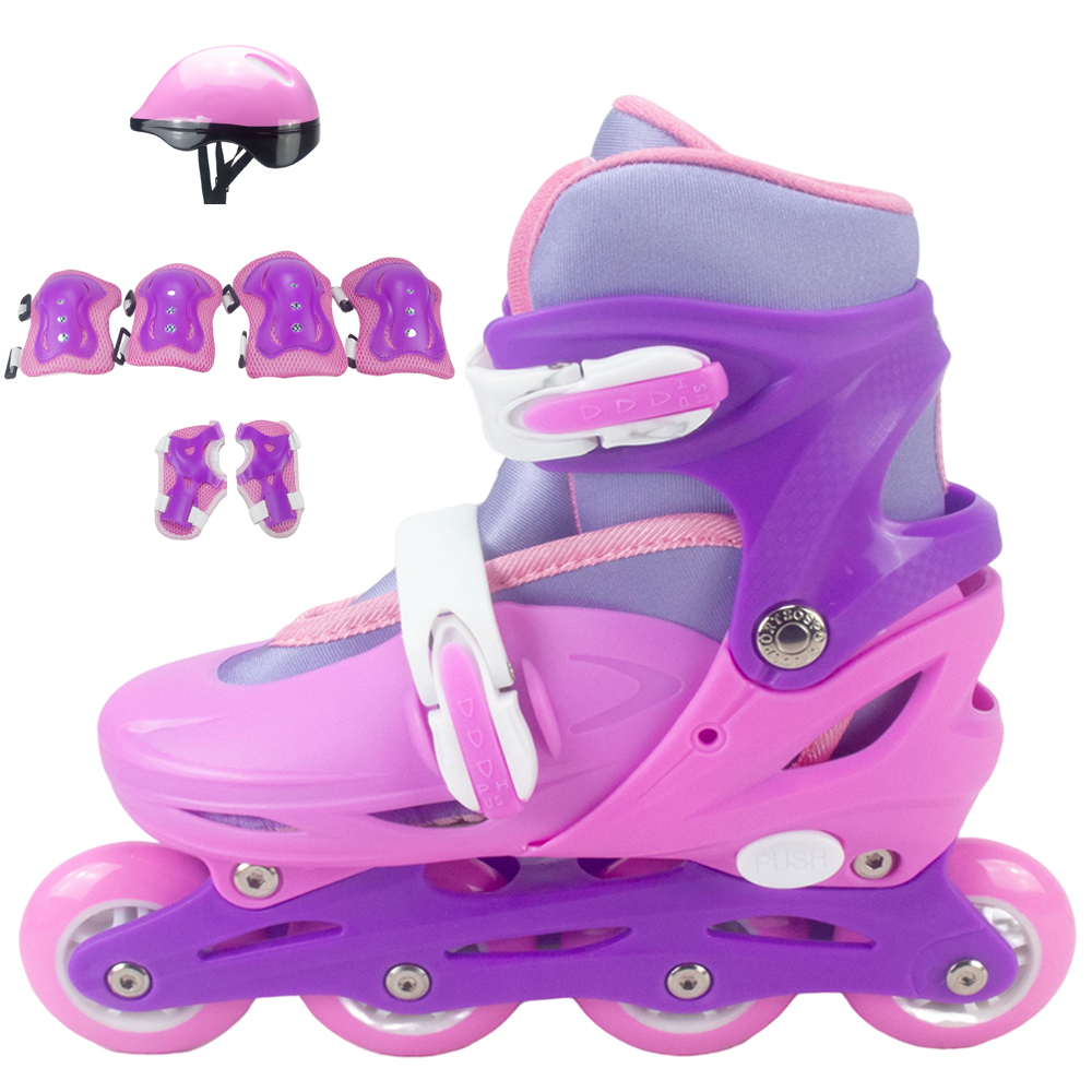 Patins Inline Roller Infantil Feminino Ajustavel 30-33 Kit Proteção - Unitoys