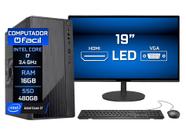 Computador Completo Fácil Intel Core I7 3.4GHz 16GB SSD 480GB Monitor 19" HDMI LED Teclado e Mouse