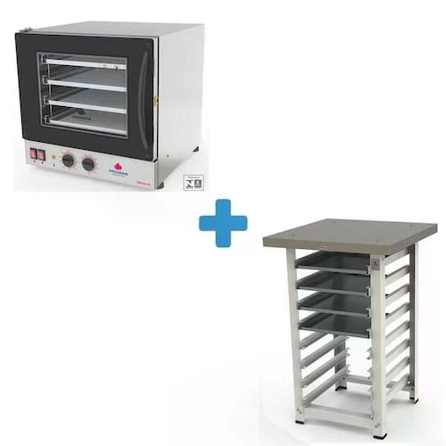 Kit Forno Elétrico Progás Turbo Fast Oven Preto 4 Esteiras PRP-004 G2 127V e Mesa Suporte Para o Forno P39304-P40023