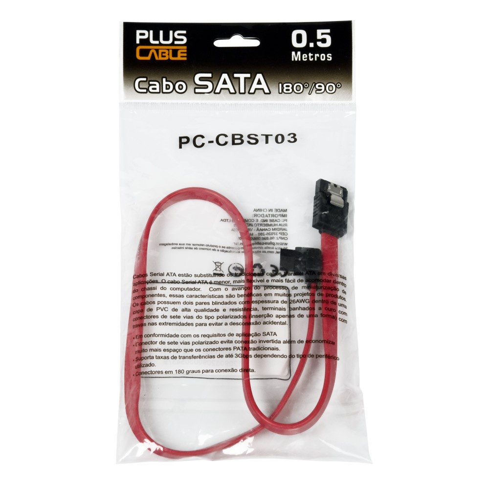 Cabo SATA de Dados 50cm SATA 1, 2 e 3 Com Trava PC-CBST04 - Pluscable