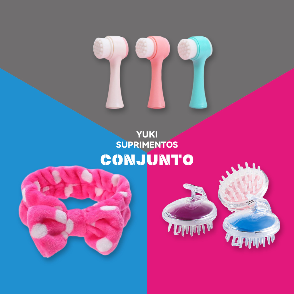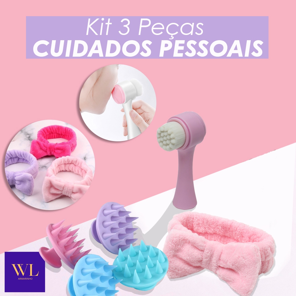 Kit de Cuidados Pessoais: Escova de Limpeza Facial, Escova de Massagem Capilar e Faixa de Cabelo em Toalha