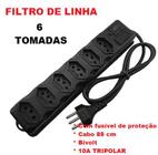 Filtro de Linha Régua Elétrica com 6 tomadas Tripolar 10A Bivolt Elite Com Fusível Cabo Pp Flexível - 1 Ano de Garantia