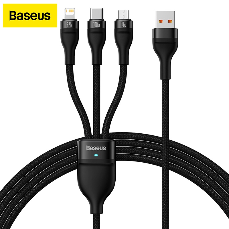 Baseus 3 Em 1 C USB Cabo Para IPhone 12 Pro 11 XR Cabo Do Carregador 100 W Micro USB Cabo Tipo C Para Macbook Pro