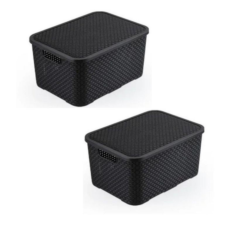 Kit Com 2 Caixas Rattan Multiuso Preta De 7 Litros 26x16x15