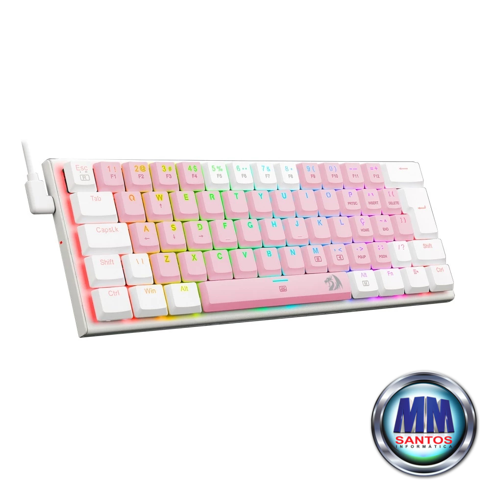 Teclado Mecânico Gamer Redragon Anivia Rosa com Branco, RGB, ABNT2, com Switch Azul - K614PW-RGB (PT-BLUE)