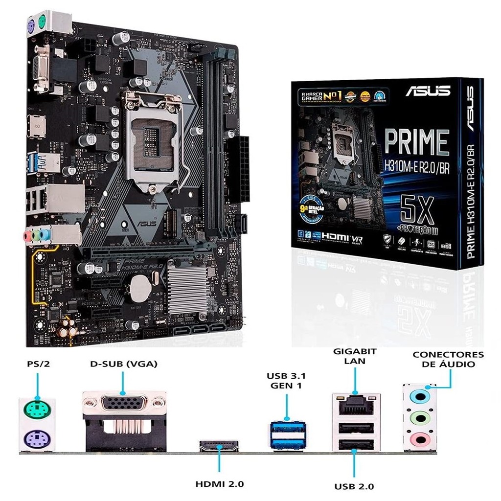 Placa Mãe mATX Asus PRIME H310M-E R2.0/BR Intel 1151 DDR4 HDMI D-Sub USB 3.1 90MB11X0-C1BAY0