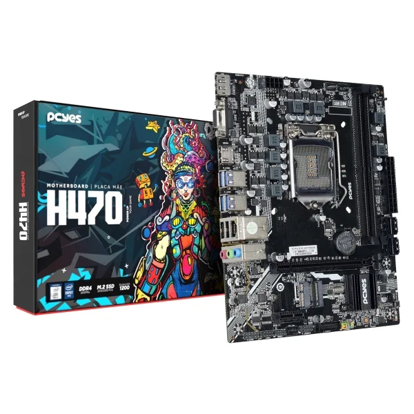 Placa Mãe PCyes H470 LGA 1200 2xDDR4 (max 64gb) M.2 Nvme 4xusb 3.0, 2xusb 2.0 Rede 1000 HDMI/dp/vga M-atx - PCyh470-10g64