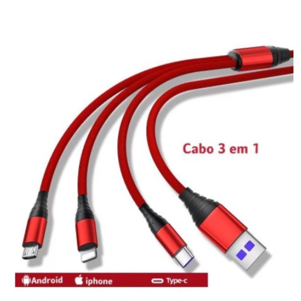 Cabo Usb Carregador Turbo 3 Em 1 Micro Usb Tipo C E iPhone 1.2M