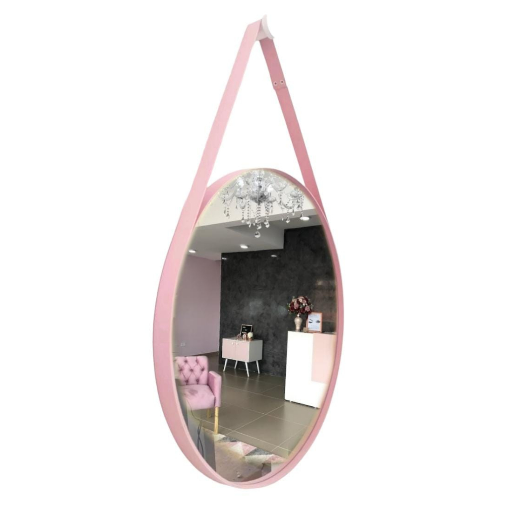 Espelho Redondo Decorativo Adnet 60cm/50cm/40cm Com Alça Em Couro Legítimo Sala Quarto Banheiro + Suporte Para Parede